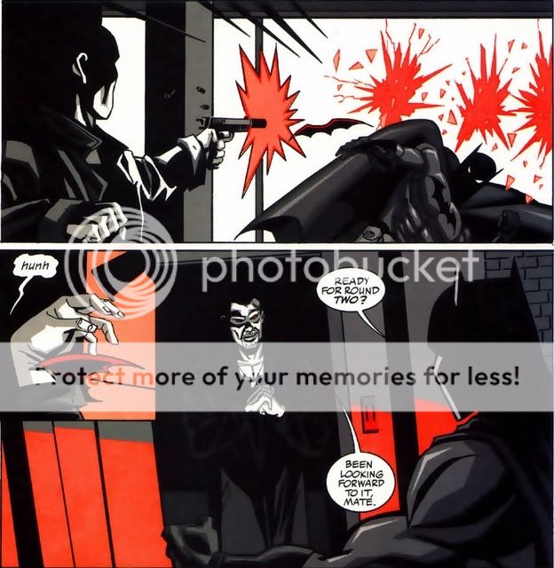 Did you see the damn scan I posted where Batman blocks a bullet? First off, you're are assuming that Wrath wasn't aiming the minigun. Second off, you've clearly run out of arguments if you say a normal shmuck could dodge minigun fire. Oh, and here's the scan.