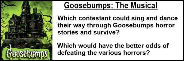 UMPIRE Posted July 18, 2021 Share Posted July 18, 2021 SEASON 10, ROUND 10 Beetlejuice Slot: The Team's Musical Interlude Season Wins: 2 Season Losses: 0 Fantasy Team Page Read more about Beetlejuice at this Wiki Official Site: Warner Bros Mary Poppins Slot: The Team's Musical Interlude Season Wins: 2 Season Losses: 0 Fantasy Team Page Read more about Mary Poppins at this Wiki Official Site: Pamela Lyndon Travers Battle Terrain Goosebumps: The Musical! Link to comment Share on other sites More sharing options...